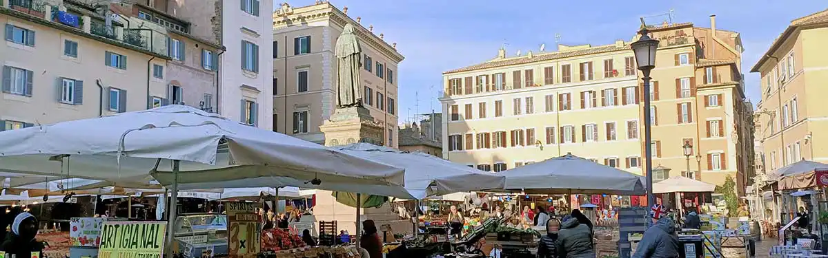 Executions used to be held at Campo de 'Fiori. For example, in 1600 philosopher Giordano Bruno was burned alive for heresy. Exactly on the site of his death is now a statue from 1889, in which he faces the Vatican (he was considered a martyr for the freedom of thought). The inscription on the base reads: - A BRUNO - IL SECOLO DA LUI DIVINATO - QUI DOVE IL ROGO ARSE - ("For Bruno - the century he predicted - here where the fire was burning"). Special fact about this square is that it is the only square in the center of Rome without a church.