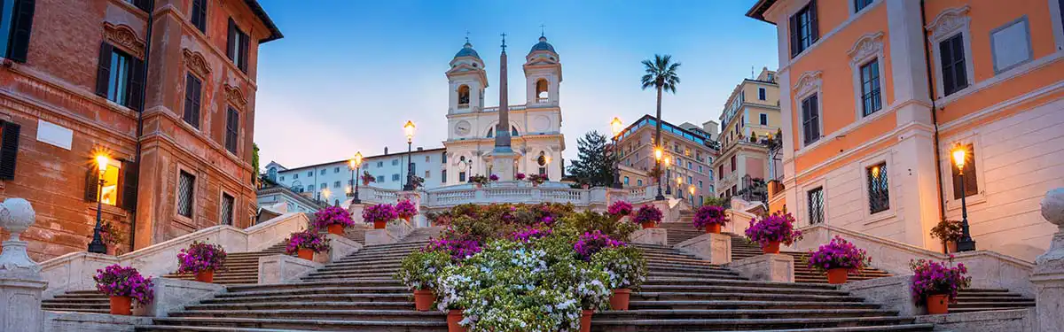 Next to the Piazza di Spagna lie the 'Scalinata della Trinità dei Monti', better known as the Spanish Steps of Rome.