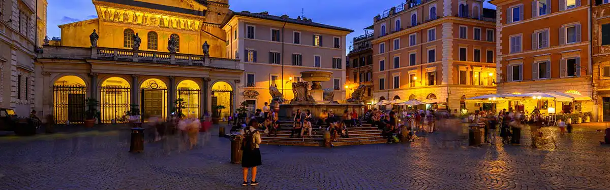 - Piazzi di Santa Maria in Trastevere is the beating heart of the neighbourhood. This square with the church of the same name and a fountain is a meeting place for the trasteverini. At night the area around this square is the main entertainment area in Rome.